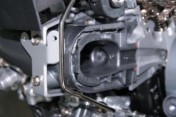 No meg, hogy a motor hengerblokkja és forgattyúsház-tömbje külön egységet képez, mely építési mód nem is olyan rég még csak versenyautókban volt használatos. Előbbi öntöttvas, utóbbi alumínium, benne acélbetétes fekvőcsapágy-házakkal. Jegyezzék meg: alu a forgattyúsház-tömb, vas a hengertömb. Egy kérdés körvonalazódik lassan a fejemben...