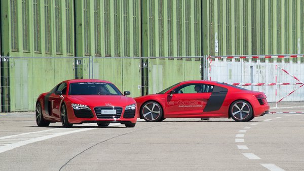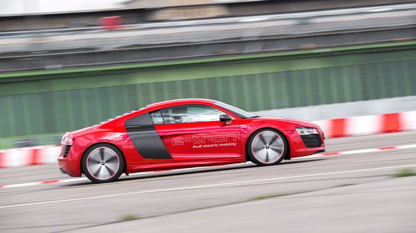 Mivel önök soha nem kaphatják meg ezt az autót, szinte mellékes, hogy az R8 e-tron végsebességét a szinte kiábrándító kétszáz kilométeres szinte korlátozták. Ezt azzal magyarázzák, hogy erőltetett menetben száz kilométerre csökkenhet a hatótávolság. Sietve megjegyzik, hogy amúgy sem az autópályán a legélvezetesebb a villanysportautó, hanem hegyi szerpentineken, esetleg versenypályán, konnektorok közelében. Ezeken a helyeken érezni igazán, hogy a tolóerő mennyire állandó az indulástól a végsebességig és, hogy az autózás élménye nem ér teljesen véget, ha már nem lesz benzin.
