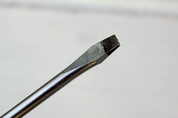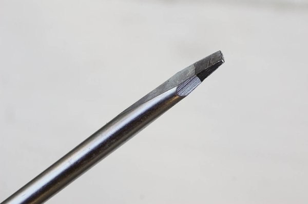 A csavarhúzó lapos éle soha nem éles, és az oldalakkal majdnem derékszöget zár be. A köszörűn vagy reszelővel vékonyabbra köszörült csavarhúzó éle pontatlanul fekszik a horonyba, és erő hatására kiugrik onnan, gyakran tönkretéve a csavarfejet. Ez barbárság.