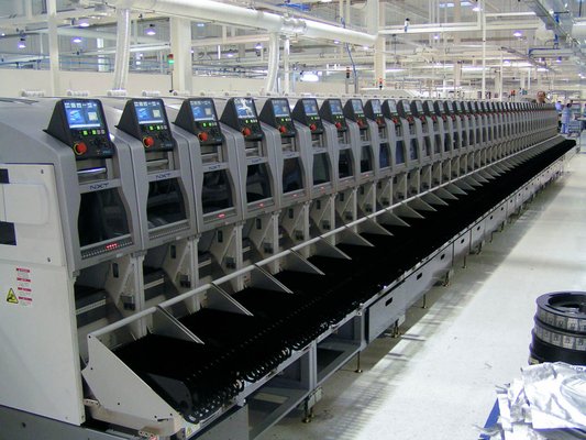 Bár képesek rá, önállóan ezek a gépek szinte soha nem dolgoznak, mindig vonatba kötik őket. A leghosszabb elméleti lánc 16-os, de vannak helyek, ahol ennél még többet is összekapcsolnak. E konfiguráció arra jó, hogy minden önálló gép nagyjából hasonló méretű alkatrészeket ültethessen be, mert így dolgoznak a leggyorsabban, keveset kell váltogatniuk. Az elsők felszórják az aprókat, a NYÁK tovább csusszan a következőbe, ott nagyobbak jönnek, s így tovább, egészen a gyufaskatulyányi cuccok felrakásáig.