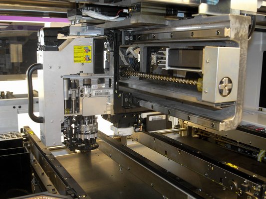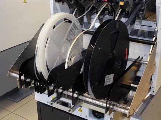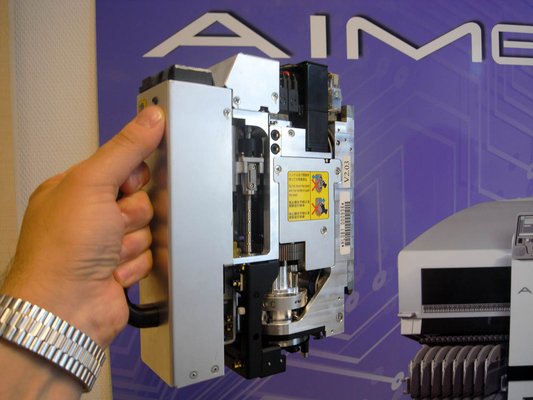 A gép végén tekercsekben áll a többféle alkatrész, akár mozigépben a film. Ezek a szalagok bent landolnak a masina belsejében, a fej onnan szippantja le a szívókáival az alkatrészeket. Odaviszi őket a villanóledekkel teli kamerához, ellenőrzi a helyzetüket, majd átlibben a NYÁK-lapra, és odabiggyeszti őket. Mindez oly gyorsan történik, hogy a fej mozgása szabad szemmel csak távolabbról követhető, máskülönben elkenődik, márpedig a szemnek nincsen rövidebb zárideje, hogy kimerevítsük. Megfelelő szervezéssel 25-30 másodperc alatt előáll egy 800-1200 mikroalkatrészt tartalmazó ABS-vezérlővel. Az elég rövid, nem?