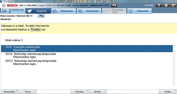 58890 km-es futásnál jelentkezett szervizünkben „diagnosztikai lámpa világít” panasszal. A hibát