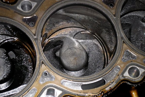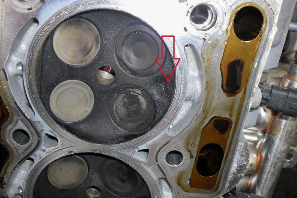 Látható, hogy a szívócsatornák áteresztőképessége is csökkent. Egy feltöltött motornál ez talán nem is lenne akkora baj, ha nem számítana a közvetlen befecskendezés miatt hatványozottan az, hogy a levegő milyen perdülettel érkezik a sűrítőtérbe.