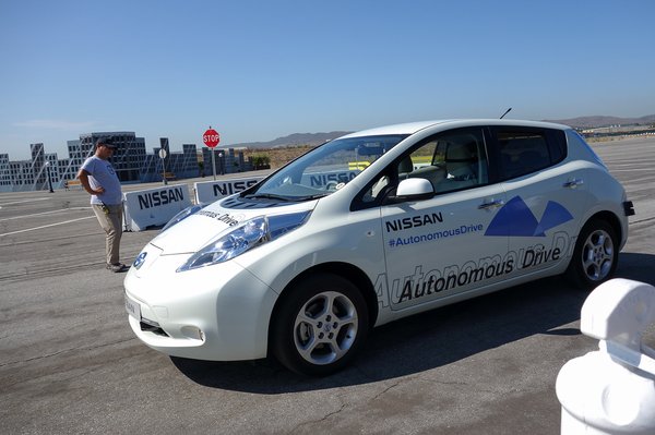Amikor a Nissan kivitt bennünket, újságírókat egy Los Angeleshez közeli reptérre, hogy mindenféle autóját kipróbálhassuk a Nissan N360 rendezvény keretében, az egyik fő attrakció éppen egy ilyen Leaf nemvezetés volt. Olyan program, ahol a világ különböző tájairól összesereglett újságírók azért állnak sorba, hogy ne kelljen a volán mögé ülniük.