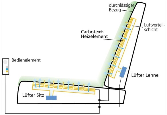 És mi van, ha mondjuk a Bentley, a Bugatti vagy a Ferrari konkrétan bele szeretné varrni az egész fűtésmodult a gyönyörű, hurkás és vékony üléseibe? Erre is van megoldás, csak drágább: a karbonszálas szövet. Ez úgy néz ki, mintha egy műszálas függönyt összeszőttek volna egy másik, fekete szövettel.