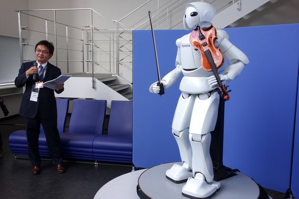 Pezsgő és narancslé helyett – mi mással – robotkoncerttel kezdődött a fogadás, az öregecske Toyota-zenekar legfiatalabb tagja, a hegedűművész tartott nekünk szívbemarkoló bemutatót. Ha kicsit szögletes is volt a produkció, a dallamfutamok mélyén ott volt már elrejtve a géniusz, esküszöm.