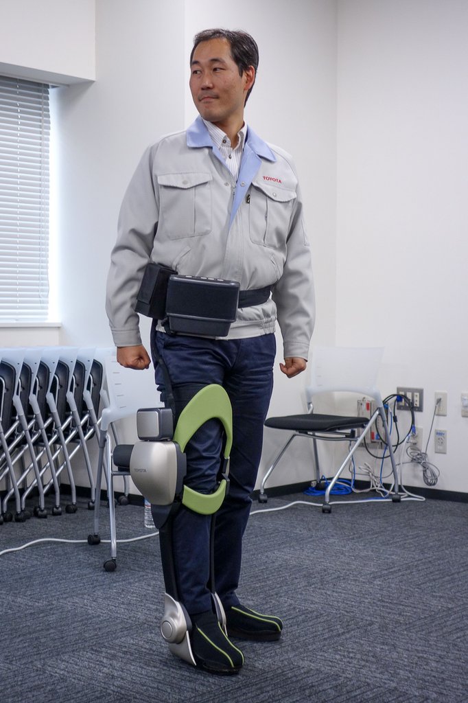 A Toyota-féle keretben azonban szervomotorok vannak, térdben hajlik a szerkezet, a mozgást pedig szenzorok és egy központi számítógép vezérli. A berendezést élesben is bemutatták egy alkalmazotton, aki ide-oda járt a szobában, leült, állványra lépett fel. A keret pontosan érzékelte, milyen sebességgel gyalogol, mekkorát akar emelni a lábán, és folyamatosan segítette az izmok munkáját. Oké, a csávó sántított így is, de kevésbé, mint a merev kerettel – ennyiről mi, kívülállók is meggyőződhettünk. Elgáncsolni nem próbáltuk, félek, furán néztek volna házigazdáink. Pedig az lett volna az igazi, bizonyító erejű videó.