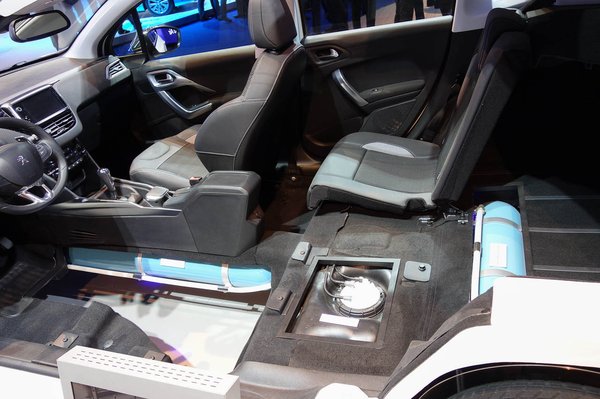 A Toyota és a többi hibrid pofazacskója mindig valamilyen akkumulátor, de a Peugeot Air Hybridé egy nitrogénnel (innen jön a levegőre utaló név) töltött gáztartály. Olyan kicsi helyen, mint amennyi a 208 és 2008 padlója alatt marad, persze nem lehet túl sok energiát elraktározni összepréselt nitrogénnel, ebben a versenyszámban az akkus hibridek, pláne a konnektorról is tölthetők sokkal jobbak.