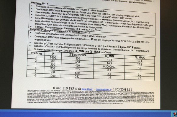 Ezen a padon beállítjuk a korábban látott táblázaton lévő adatokat, járatjuk a befecskendezőket a padon, és később megnézzük, hogy a szállított gázolajmennyiség megfelelő-e.