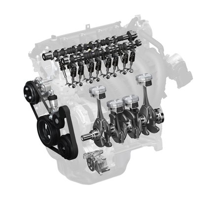 Az extrém magas 14:1-hez kompresszióviszony azonban egy lehetséges maximum, elméleti érték, ugyanis a szívó- és kipufogóoldalon is változó szelepvezérlés van. Ennek elektronikus programozásával a valós, úgynevezett dinamikus kompresszióviszony módosítható, így a számolt, azaz statikus, vagy geometriai 14:1-től bizonyos üzemi körülmények között el tudnak térni. Ezzel a motor minden üzemi körülmények között az optimumot tudja nyújtani a keverékképzés és hatékony energiafelhasználás területén. A rendszer annyira takarékos, hogy a jelenleg még nem értékesített, de szériaérett hibridhajtású járművekben ezeket a motorokat szinte változtatás nélkül alkalmazni tudják.