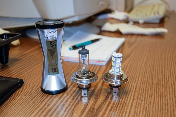 A mérésen megint annyira fellelkesültünk, hogy meg akartuk tudni, a mostanában elterjedőben lévő, H4-es formájú, de nem szabványos, hanem ledekkel helyettesített égők mit produkálnak. Pénz nem számít alapon vásároltunk egy olcsóbbat, egy meglehetősen drágát, valamint Kínából is rendeltünk pár ígéretes példányt.