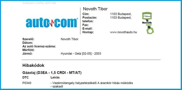 A P0340-es hibakód a gyakorlatban több hibaokot is jelenthet. Akár a forgattyústengely, vagy a vezérműtengely jeladójának a hibája, vagy azok tápellátásának, esetleg testelésének hiánya is valószínűsíthető. Extrémebb esetben a vezérlés átugrása is lehetséges, de ezt ki lehetett zárni, hisz nem egy állandósult jelenséggel álltunk szemben. A tesztutak alatt természetesen nem jelentkezett a hiba, ezért pénzfeldobásos alapon az ügyfelemmel egyeztetve kicseréltem a vezérműtengely-helyzetérzékelőt.