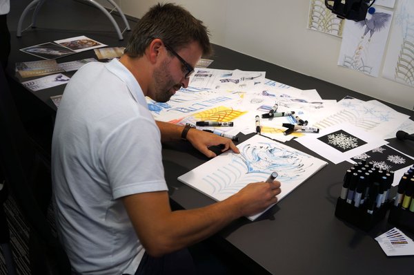 Persze a dizájner után pár percre megkapja a mikrofont a mérnök is, és kérhet kicsit nyitottabb vagy zártabb alakzatot, mégis az volt az érzésem, hogy a minta messze nem olyan fontos a gumi működése szempontjából, mint ahogy hisszük. Az UG9 mintájának kialakulásánál is csak a futófelület közepén igazítottak egy kicsit ahhoz képest, amit a művész megálmodott, ami lehet persze azért is, mert ő egy zseni, vagy csak már tudja, hogy milyet kell rajzolni. A szimulációs szoftver eredményei alapján legfeljebb változtatnak egy kicsit az árkok szélességén, és már jó is lesz.