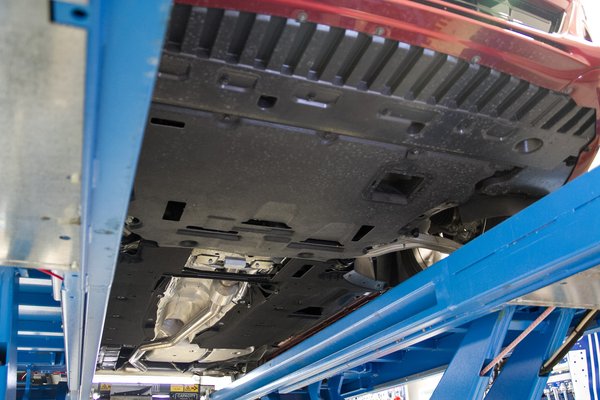 De ha már az autó alatt vagyunk, ideje kalapot emelni a fordosok előtt, ugyanis a Mondeo egész alját leburkolták. Nem csak a motorteret, ahogy régóta szokás, de az ülések alatti részt is, sőt, a hátsó futómű előtt is folytatódik a levegő tudatos irányítása, hogy az autó alatt mozgó levegő is minél kevésbé akadjon meg. Ennek a légellenállás szempontjából komoly jelentősége van – ha belegondolunk, az autó alatt ugyanúgy el kell mennie a levegőnek, mint fölötte, sőt, még súlyosabb a helyzet, mert nem lehet csak úgy félretolni a szelet, mert egyből ott az út.