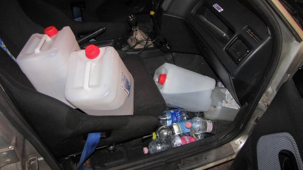 Eleinte abban bíztam, elég lesz annyi, hogy a nagy lyukat elszorítottam, és ha a hűtő vízkörét nem helyezem nyomás alá (nem tekerem vissza a kiegyenlítő-tartály kupakját), akkor jó sok liter vizet magamhoz véve, gyakran utántöltögetve haza tudok evickélni. De az első öt kilométeren látszott, szinte minden megtett kilométerre jut egy liter elfolyatott víz. Rájöttem, semmi vesztenivalóm nincs, a hűtő már úgy is kuka, itt a remek alkalom, hogy kipróbáljam a tojás-trükköt. Egy útszéli non-stopban vettem egy karton tyúktojást, majd vidáman pattantam volna be az autóba, de sajnos kizártam magam. Itt egy negyedórás, terven kívüli matatás következett, aminek a végén csak bejutottam a kocsiba, irány egy kivilágított placc.