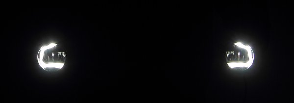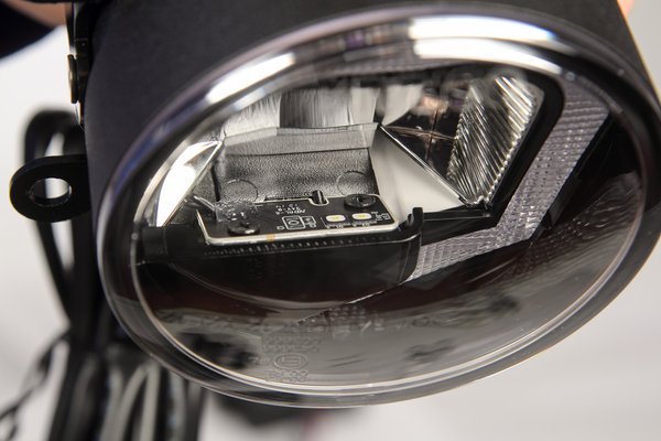 A led-technológia miatt nem meglepetés, hogy a fogyasztása is kisebb a hagyományos ködlámpáénál, mindössze 16 W, a menetfény pedig 25 wattos. Utóbbi nyilván azért több, mert több a led benne, a ködlámpában csak oldalaként kettő van. Ez a kettő viszont egy szabadformázású parabolatükörre veti a fényt, és nem csak nagyon erős a fénye, hanem szinte nulla szórt fénye van, annyira nulla, hogy nem szemből fényképezve alig látható, hogy világít. Viszont ha belenézünk a fénycsóvába, három percig garantált a farkasvakság. A gyári ködlámpa mellette szánalmas, sokkal több szórt fénnyel. Nagyon szép, keskeny sávot világít és nagyon szélesen. Mi kell más egy jó ködlámpához?