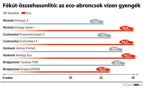 Az eco-abroncsok lemaradását viszont látványosan demonstrálja, hogy a tesztgyőztes gyártó Energy Saver+ típusa csak az alsó harmadban kapott helyet, egy csoportba rendeződve a másik három környezetbarátnak kikiáltott gumival. Ráadásul a természetkímélő hatásukat is jelentéktelennek értékelte az ADAC, amit jól tükröznek a mindössze néhány tizedes eltérések a fogyasztásban, illetve kopásban. Ebből nem nehéz leszűrni az üzenetet, amit az ADAC közvetíteni szeretne: ne vegyenek eco-abroncsokat, mert nem éri meg.