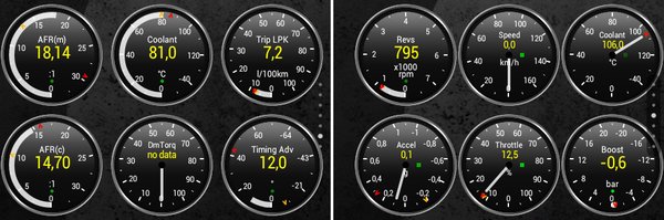 A másik terület, amire szokás használni ezeket az appokat, olyan adatok megjelenítése, mint a turbónyomás, a valós vízhőfok vagy a lambda. Akár azért, mert nincs műszer rá az adott autóban, akár csak úgy játszósdiból. Amennyire pontosan kijönnek ezek az OBDII-csatlakozóból, annyira pontosan tudjuk megnézni őket a szabadon programozható műszereken. A Torque-nak van néhány képernyőnyi előre konfigurált műszerfala – ezek egész jók, de a körműszereket nem feltétlenül lehet jól leolvasni egy kisebb okostelefonon. Aki persze androidos tabletet cuppant a műszerfalra és elbíbelődik egy félórát a szája íze szerinti elrendezés felprogramozásával, elégedett lehet a végén, de én az alább részletezett DashCommandot sokkal ügyesebbnek tartom, főleg, mert nem kell vacakolni a programozgatással, mint itt.