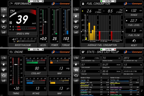 A fél óráig teljes funkcionalitással ingyenesen használható DashCommand harminc perc alatt tökéletesen meggyőz, hogy érdemes kiadni érte bő kétezer forintot. Valahogy menőbb az egész megjelenése, mint a Torque-é, és nem csak profibban mutat, de okosabban is vannak összerakva a műszerfalak. Az apró, 480x320-as képernyőmön mindig hamarabb megtaláltam a számomra érdekes adatokat, egy pixelre több infó jut, nincsenek nagy, haszontalan fekete foltok.