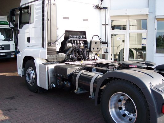Úgy tűnik, az osztrák Bundesministerium mérlegelte a helyzetet, és arra jutott, hogy ez a kisebbik rossz. Kikötötték, hogy milyen képzettséggel szabad elvégezni az átalakítást, milyen műhelyekben, és a gázos rendszerekre vonatkozó összes előírás betartása esetén kiállítják a Betriebsbuch-ot, amellyel boldogan közlekedhetnek a teherautók dízel-gázos vegyes üzemben. Az osztrák Scaniával együttműködésben már rengeteg átalakítás történt, az ottani fuvarozók egy-másfél éves megtérülésről beszélnek, 7500 euró (mintegy 2,2 millió forint) átalakítási költség mellett, úgy, hogy még egy motormeghibásodásra kötött speciális biztosítás is belefér.