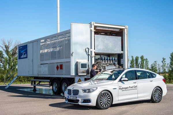 Egy autó mozgatásához elég sok cella kell: 200-400 darab, a jármű méretétől függően. A BMW most bemutatott prototípusában, egy 5-ös GT-ben egy 180 kW teljesítményű (245 LE) villanymotort táplál a kocsi orrába épített hatalmas cellaköteg: a kiegészítő berendezésekkel akkora egység, mint egy V8-as benzinmotor, nem véletlen, hogy az autó orrába építették. A villanymotor a hátsó tengelyt hajtja, elég tisztességesen: a nagykocsi bő 8 másodperc alatt képes százra gyorsítani, és a fejlesztőközpontban megtett tesztkörök alapján egy teljesen használható jármű. Helyi emisszója nincs, hisz a cellában zajló reakciók végterméke a víz.