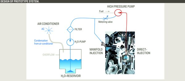 A másik nagy kérdés az, hogy honnan vegyék a vizet. Holmi vízköves magyar csapvíz hamar kivégezné a legcsodálatosabb injektort is. Viszont az autók értékes kvázi-desztillált vizet pisilnek maguk alá, amikor megy a klíma. A sajtóbemutatón az átalakított 1-es BMW légkondija 1,9 liter kondenzvizet termelt óránként a dél-francia 38 fokos hőségben. Ha ezt egy öt-hétliteres tartályba gyűjtik, néhány szélsőséges éghajlatú országot leszámítva soha nem kell utántölteni a víztartályt, állítják a tervezők. Ha ez igaz, tényleg zsenik dolgoznak a BMW-nél.