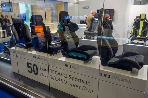 A Recaro-stand legszebb éke az ötvenévnyi sportülés-fejlődést bemutató minikiállítás. Összesen négy szék van ott 1965-től 2006-ig, de elég egy pillantás, és megvan a kép a fejünkben.