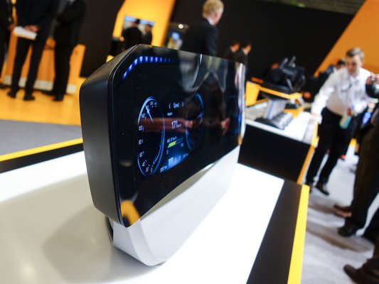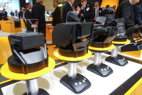 Tovább a Continental csupa sárga területére, e cég nemcsak autógumikat gyárt, hanem fontos elektromossági és elektronikai beszállító is, ez talán nem mindenkinek nyilvánvaló. Itt terjeng egy csomó műszerfal, végre látok egy LCD-st kiszerelve, ez, ha nem tévedek, egy Mercedes S osztályé. Nem is olyan lapos, mint gondoltam, összehasonlításképpen van mellette egy elektromechanikus fajta is, az alig vastagabb. Persze, hiszen kell bele háttérvilágítás is, no meg az elektronikának egy részét is beleépítették.