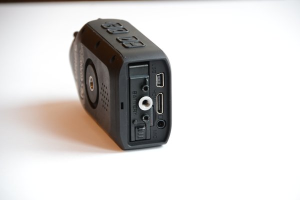 Elsőre a legszembetűnőbb, hogy nem egy doboz, mint ismertebb társa, hanem inkább egy lapított csőre emlékeztet. Emiatt valamivel természetesebbnek hat, mint a kocka, inkább hajaz apáink kamkordereire. Valószínűleg a légellenállása is kisebb, mint egy GoPrónak, és bár motoron nem próbáltam, el tudom képzelni, hogy kevésbé tekeri el a fejünket a szél, ha egy ilyet ragasztottunk a sisakra.
