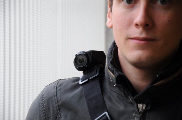 Van hozzá egy testkonzol is, vagyis a szadó-mazó pánt. Ez valójában egy hám, amelybe kézzel bújunk bele, és a mellkason összecsatolva rögzítjük, majd a kamerát a vállunkon lévő konzolba toljuk bele. Ez jó, hiszen marad két szabad kezünk, például elég látványos on-board videókat lehet csinálni vele, de akárhogy próbálkoztam, belelógott az állam a képbe. Aztán lehet, hogy csak az arcom túl nagy, vagy a vállam túl kicsi. További hasznos kiegészítő a távirányító, amely az első párosítás után folyamatosan kezeli a kamerát, akárhányszor bekapcsoljuk. Fotózhatunk vele, vagy elindíthatjuk-megállíthatjuk a felvételt, és igazán praktikus, hogy övre, óraszíjra, vagy hevederre is felfűzhetjük, és egy hagyományos mini USB-vel tölthetjük. Ellenben nem vízálló, ami a kialakításából adódóan – tulajdonképpen gumihártyák a kapcsolók – érthetetlen.