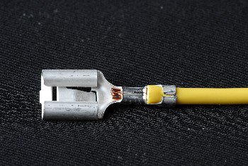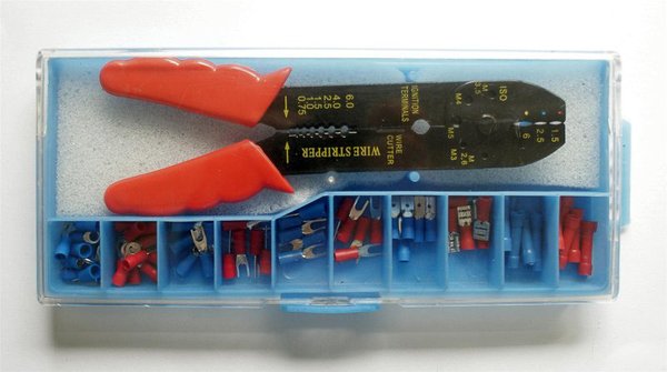 Személyes kedvencem egyébként a szigetelés nélküli, csupasz saru, ez a legprofibb megoldás. Ehhez másik fogó kell, amely ráhajtogatja, belenyomja a saru lemezét a rézdrótba, és a vezeték szigetelését is körbeöleli, ezért mechanikailag ez a legstabilabb megoldás. Ha kész, erre aztán rá lehet húzni egy külön kapható gumisapkát, amely általában tartósabb, mint a szigetelt saruk piros, kék, sárga kemény műanyaga, vagy ha nagyon igényesek vagyunk, zsugorcsővel védhetjük az egész csatlakozási pontot.