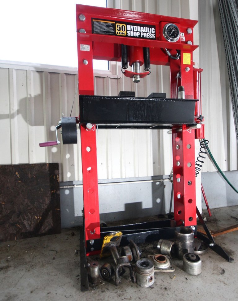 Ilyen préssel nemcsak szilentblokkokat, csapágyakat, csapszegeket, tengelyeket és egyéb csapokat, illesztett izéket lehet szét- illetve kiszedni, de kellő szakértelemmel egyes elgörbült alkatrészeket is vissza lehet egyenesíteni. Megfelelő műhelyben kincset ér az ilyen – nekünk, kívülállóknak pedig a látványa támpontot nyújt az iparosok közötti választásban. Ahol ugyanis ilyen szerkezet van, és láthatóan használják is, ott nagy eséllyel komoly és precíz munka zajlik. Mi pedig innentől értő módon kapcsolódhatunk be a műhelybeszélgetésbe, némi bennfentes respektet szerezve ezzel. Már megérte.