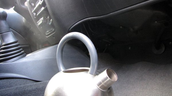 Most már csak azt kellett megoldani, hogy párásodjon be a kocsi ablaka, méghozzá akkor, amikor én szeretném. Ez a mostani időjárás mellett nem könnyű, verőfényes napsütésben nehezen megy az ilyesmi faluhelyen. De ahol nagy a szükség, ott közel a teáskanna. Ha forró vízzel teli kannát teszek a kocsiba, pillanatok alatt be fog párásodni, méghozzá akkor, amikor csak akarom- ezt is kipipálhatjuk, van macskaalmom, van párám, mi kell még? Egy zoknit meg egy műanyag tálat kellett még találnom. Autóm van, próbálhatunk.