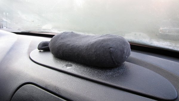 Egyetlen dolog kíván finomítást, ez pedig a szilikagél tárolása. A zokni jó ötletnek tűnik, de ezek a kristályok, bár szilárdak, sajnos azért finoman porlanak, és a textil szálai között kipotyognak a kis darabkák, ezért a műszerfal úgy néz ki tőle, mint ha egy iszonyúan korpásodó wuki-csorda headbangelt volna az autóban. A műanyag tárolóedényt ha lezárom, nem fér hozzá a szilikagél a párához, ha nyitva hagyom, az első rossz mozdulatra kristálypalotává alakítom a kocsit. Talán egy hibrid megoldás lehet a nyerő: kristályokat a zokniba, zoknit a dobozba. Ha nem teszem rá a fedőt, dolgozhat a sok kis kristály, ha meg elindulok, szépen rápattintom a fedőt.