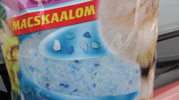 Igazából nem kételkedem a dolog hatékonyságában, mert ha az ember tudja, hogy a macskaalmot úgy találták ki, hogy az a lehető legtöbb vizet magába tudja szívni (jó, a macskából vizeléskor nem konkrétan víz távozik, de értjük, miről van szó), nem nehéz elképzelni, hogy ezt a párával is megteszi. Azért biztos, ami biztos alapon elmentem a közeli állateledeleshez és vettem egy zacskó macskaalmot. Kinéztem egy ötkilós zsákot, illatosított granulátum volt benne, ígéretesnek tűnt. Fizetés előtt elmeséltem, mit akarok vele csinálni, úgyhogy a boltosok gyorsan mondták is, ilyen célra a szilikás almot szokták vinni. Ez ugye, két dolgot jelenthet: vagy nagyon sokan látták már a trükköt, és ki akarták próbálni, vagy tényleg működik, azért járnak vissza az emberek.