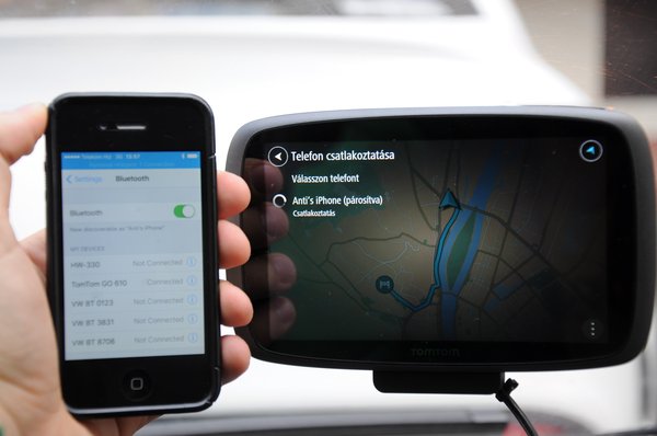 Az első problémám vele, hogy a forgalmi információkat a netről tölti le. Igen ám, de a Go 610-esben nincs SIM kártya – a 6100-as típusban már van –, így kénytelen a telefonunkról bluetooth-on megosztott netet használni. Nem drámai az adatforgalom, de csak szükség van arra a fránya mobilra, és itt harap a kígyó a saját farkába: ha egy telefon képes a mobilnet megosztására, jó eséllyel navigálni is tud, minek még egy kütyü?