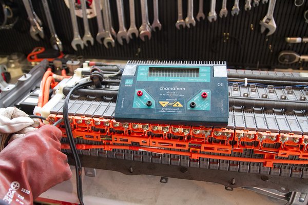 Ehhez Dodó egyenként megy végig rajtuk egy speciális töltővel, amely váltakozó kisütéssel és feltöltéssel kondicionálja a huszonnyolc egységet. Egy nap nagyjából el is megy azzal, amíg az összes cella azonos állapotba kerül, hogy megint össze lehessen építeni őket, de utána garantáltan nem lesz baj. Lényegi különbség nincs, hogy új vagy használt cellát használ az ember a cserénél, mivel úgyis használtak közé kerül, a meghibásodások pedig inkább anyaghibára vagy külső behatásra vezethetők vissza, mint elöregedésre.