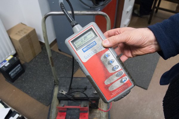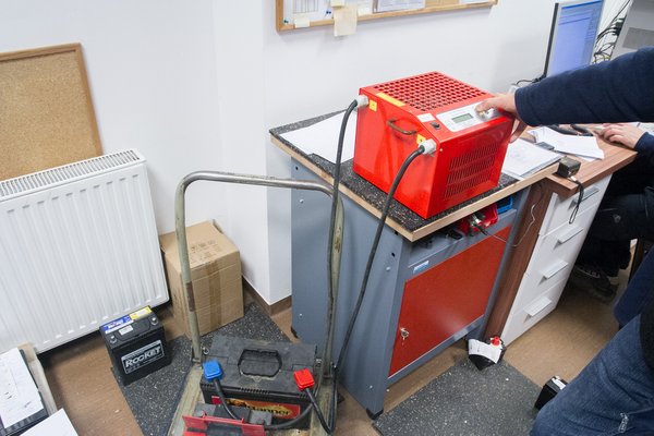 A profi, elektronikus akkuteszter ára már hatszámjegyű tartományban van, a szakemberek szerint legfeljebb azt tudja megmondani, biztosan rossz-e az akku. Ha rosszat mutat, annak hihetünk, a jónak ítélt akksi még nem biztos, hogy jó. Hasonló a helyzet a régi, klasszikus terhelővillával. Ahhoz, hogy megbízható szakvéleményt tudjon mondani valaki egy akkumulátor indítóképességéről, a valóshoz hasonló terhelésnek kell kitenni, vagyis százas nagyságrendű ampert kell kiszívni belőle. Erre van is a Forexnek saját fejlesztésű készüléke, amellyel a bejövő problémás eseteket vizsgálják, de kereskedelmi forgalomban ehhez hasonlót sem láttam még. Akár 420 amperrel is tud terhelni szabadon választható időtartamig, közben tűpontosan méri a feszültséget. Ezzel már megfelelő tapasztalat birtokában egyértelműen el lehet dönteni, mit tud az akku.