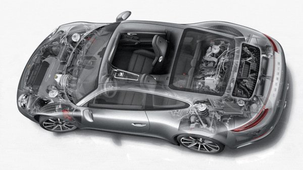 Egy 911-es elég pici, hátsó ülése gyakorlatilag csak azért van, hogy Amerikában a biztosítók alacsonyabb havi díjjal biztosítsák, a kabrión egy fokkal még meredekebb a támla. De az egyéb terek is szűkek, nincs sok hely hűtésnek: a vízhűtők 1996 óta az első kerékjáratok előtt laknak, mostantól zárható rostélyokkal.