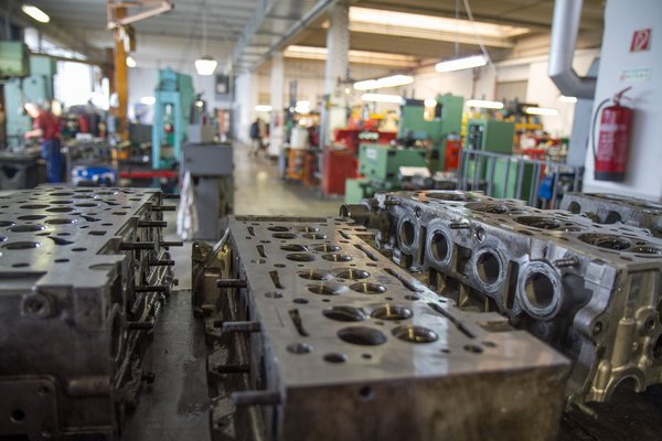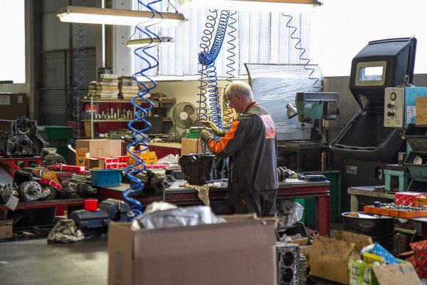 A Szakál gépműhelyében sajátosan keveredik múlt és jelen, a családias hangulat és tömegtermelés. Harmincan dolgoznak a motorfelújító részlegen, ami ebben az iparágban, amelyben egyszemélyes műhelyek is bőven akadnak, hatalmasnak számít. A munkafolyamatok úgy vannak felbontva, hogy mindenki egy részfolyamatra legyen ráállva, azt viszont nagyon vágja. A pár perc alatt, amíg a sürgős munkákat jelölő piros kábelkötegelő, a műhelyen belüli gyorsítócsík hatásáról elmélkedtünk, a munkapadon atomjaira ugrott egy háromhengeres Škoda HTP hengerfej.