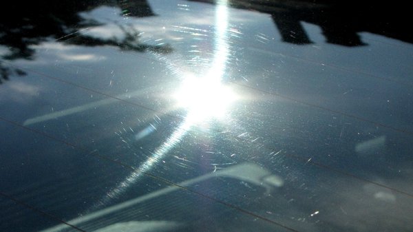 Aztán elgondolkoztam a dolgon, és arra jutottam, nem is feltétlenül kell konkrétan az üveg felületét felcsiszolva políroznia. Hiszen a hátsó üveget a sokszor szárazon járatott ablaktörlő ezernyi apró karccal tette rondán fénytörővé, de nem csak a karcok okozzák a kellemetlen fényeffektust, hanem a mikrokarcokba beülő koszdarabkák is erősen hozzájárulnak a látványhoz. Meg aztán a viasz a fényezésen is úgy működik, hogy a finom lakkegyenetlenségbe beleül, és feltölti azokat, így teszi a látványt szebbé. Tehát akár működhet is a dolog.