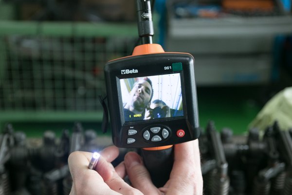 A Beta-féle ipari eszköznek saját, színes képernyője van egy pisztolymarkolatra szerelve, és a képet, videót SD-kártyára is tudja rögzíteni, amennyiben az autószerelő dokumentálni szeretné a látottakat. Sőt, TV- és mini USB-kimenete is van, bár ezekről már őszintén szólva nem tudnám megmondani, mi értelmük.