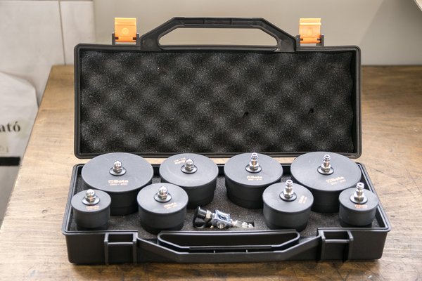 A kofferben négy pár dugó található, amelyek lefedik az általános átmérő-tartományt. Öt milliméteres lépcsőkkel vannak kiképezve a dugók, a köztes méretekbe némi tágítással lehet bedugni őket. Az egyik oldalra gyorscsatlakozóval lehet rákötni a szelepet, amelyet keréktöltő pisztollyal lehet megnyomni, mintha gumit fújnánk. Mindez a megszokott Beta-minőségben. Nem űrtechnika, némi kreativitással akár házilag is össze lehetne barkácsolni, de ezt profi műhelyeknek szánják, ahol nincs idő kendácsolni, kísérletezni, és úgyis visszahozza az árát.