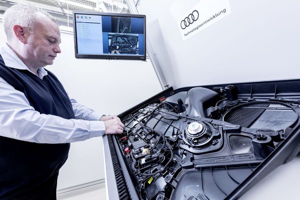 Ezen a ponton értjük meg, hogy szándékosan szervezték lepukkant csarnokba  az eseményt, mert a félelmetes high-tech erődemonstráció kontrasztosan emelkedik ki a környezetéből. A cég állítja, a rugalmas összeszerelési technológiával csökkenthetők a költségek, így maga a termék is olcsóbb lesz, és természetesen a fenntarthatóság, a jövő Audija, de még a tailor made (nagyjából kézművest jelent) szavak is elhangzanak. A lényeg persze az adatok elemzése, ami nagyjából mindenfajta iparág jövője, hiszen a különböző belső rendszerekben áramló adatokban ott van minden, ami a hatékony - és a munkás számára kényelmesebb - termeléshez kell. A Big Data, vagyis a fent említett rendszerekből összefolyó adatok elemzése a minőség és a termelékenység javulásához vezet.