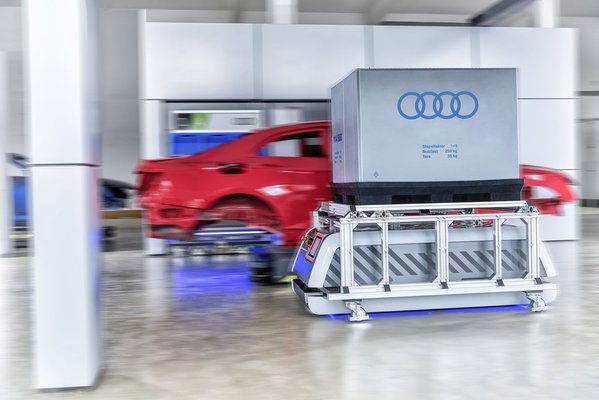 Az alkatrészeket a már emlegetett guruló hűtő-szerű szállítóegységek viszik. Ezek neve Paula, 2,4 km/órával haladnak és 1,2 tonna szállítására képesek. Rádiójelekkel kommunikálnak, és nincs szükségük jelölésekre a padlón, sőt simán kikerülik az útjukba sétáló embert, vagy a belógó akadályokat. Annak ellenére, hogy Paula az egyik legkorszerűbb autóipari fejlesztés, ólomzselés teherautó-akkumulátorokkal működik. A célra ez is elég, meg valószínűleg az önsúly sem hátrány, amikor tonnányi alkatrészt kell arrébb húzniuk. A töltés indukciós elven valósul meg a padlón keresztül, hasonló elven mint az újabb mobiloknál. A szállítórendszer neve Arculus, cégen belüli startupként hivatkoznak rá. A startup az innovatív ötleten alapuló, éppen induló kisvállalkozás trendi megnevezése, vagyis az Audi pénzéből fizetett, Audi munkatársak által az Audi számára fejlesztett eszközre mérsékelten illik. Eleinte persze drágább lesz a gyártás, hiszen az átállás körülményes, az első R8-asok és Lamborghinik készülnek majd így.