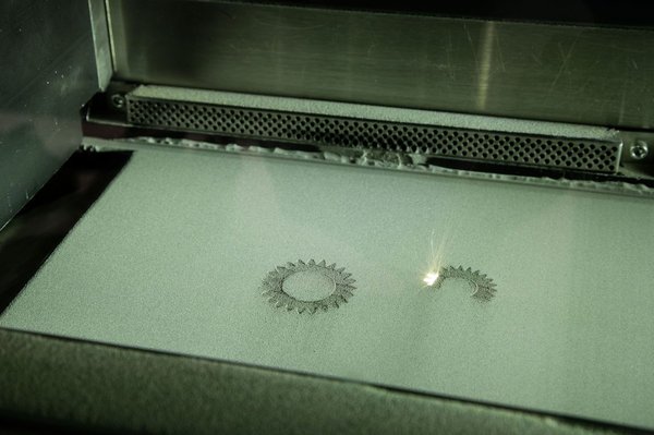 Átvezettek minket még egy gyárak közti interaktív videotelefon-rendszeren is, de mivel már elmúlt 1998, annyira nem rökönyödtünk meg, pedig a kedvünkért a győri üzemet hívták. Mentségükre legyen mondva: a titkosításban lehetett kihívás. Kicsit unottan érkeztünk a 3D-nyomtató részlegre, de ha valamiért, akkor ezért tényleg határtalanul lehetett lelkesedni. Műanyagból már valószínűleg sokan láttak ilyet, de a fém az más, főleg, ha önhordó kasznik statikai elemeit készíthetik nyomtatással. Az elv egyszerű: a gép belsejében leszórnak egy hatvan mikron vastagságú fémpor-réteget, majd egy cikázó lézer körberajzolja a formát. Ahogy áthalad a szemek felett, a lézer nyomában megolvad a por, és kemény egésszé áll össze a védőgáz alatt.