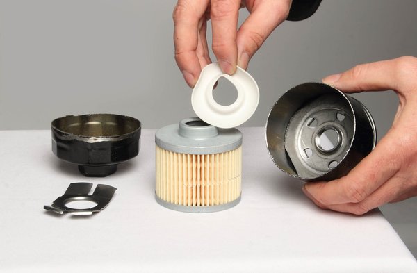 Mivel a szűrőpapírt itt is csak szemrevételezéssel tudjuk vizsgálni, azt nézzük, mennyire van megtámasztva, adnak-e hozzá tömítőgyűrűket, ami érdemes mindig cserélni, illetve a szűrőbetét teteje és alja hogyan tömít, hogyan ül fel a házra, a magassága is fontos. Ha az alsó vagy felső tömítés nem megfelelő, szűretlen olaj kerülhet a kenési körbe, még nagyobb baj, hogy a korábban megszűrt szennyeződés is bemosódik.