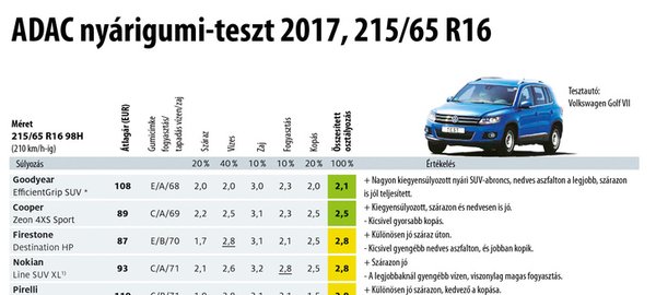 Az ADAC teszteredményeit érdemes összevetni a gumicímkéken szereplő adatokkal. Utóbbiakat ugyanis a gyártók adják meg, így adódhatnak eltérések a tényleges tesztekhez képest. Jó példa erre a SUV-kategóriában szereplő Yokohama gumi, amely „C” jelzéssel az átlagosnál valamivel jobb tapadást ígér vizes útra – miközben a teszten éppen itt vérzett el. Ha ezeket az eredményeket a pénztárcánk nyújtotta lehetőségekkel is összevetjük, akkor nyugodtabban választhatunk.