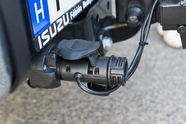 A tartó elég könnyű, jól kialakított fogantyúkkal, egy átlagos anyuka is rá tudja emelni horogra. A finombeállításhoz nem árt két ember, nekem is sikerült ferdén feltenni. Az első akadályt a lámpák okozták, de miután megfejtettük a kihajtás, elcsúsztatás sorrendjét, a rendszámtábla-tartó kifordítása már simán ment. Utóbbi egyébként megvilágított, így semmi akadálya a rendszám hátra tételének.