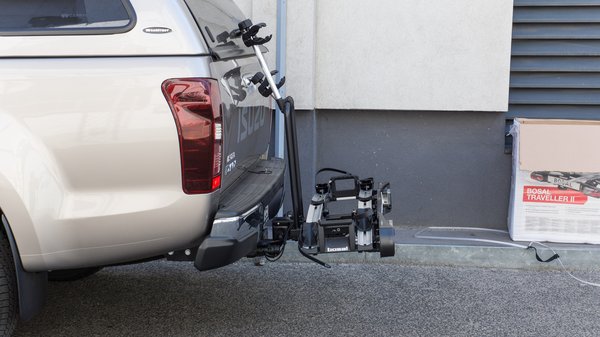 Jelen esetben a Bosal Traveller II modellt próbáltuk rá egy vonóhorgos autóra. Ez kétbringás verzió, de létezik belőle három bringát cipelő variáció is. Igazi férfiakhoz méltón a használati kézikönyv mellőzésével kezdtünk neki a tartó összeállításának. A feltevéssel nem volt gond, a tartó maga nem túl súlyos darab (17 kg), viszont akár 60 kilónyi bringát is rá lehet rakni. Mondhatnánk, hogy manapság még a leggagyibb se nyom 18-20 kilónál többet, de ha mondjuk van egy elektromos rásegítős bringánk, ott az aksik miatt teljesen reális a 25-30 kg.